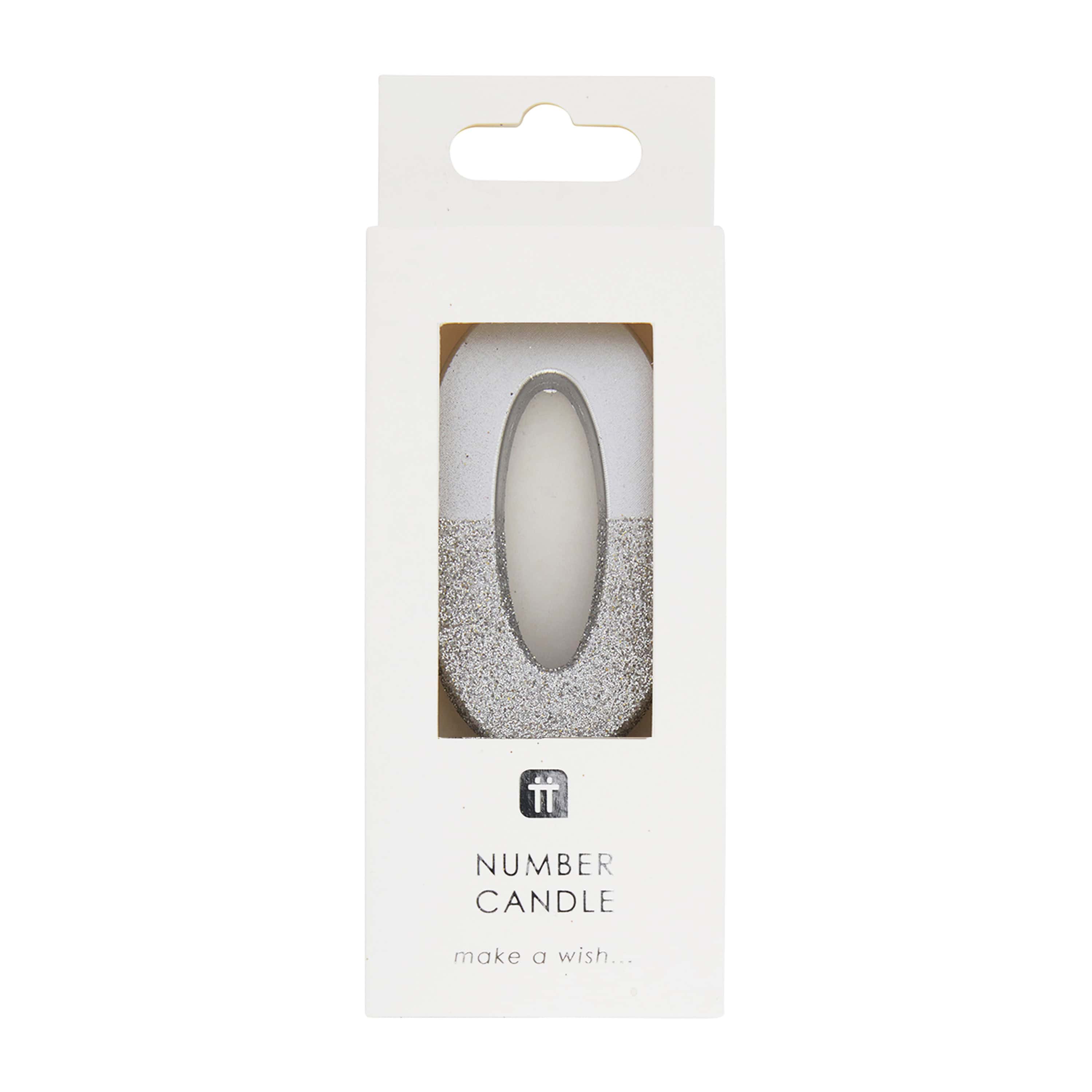 Silver Glitter Number Candle 0