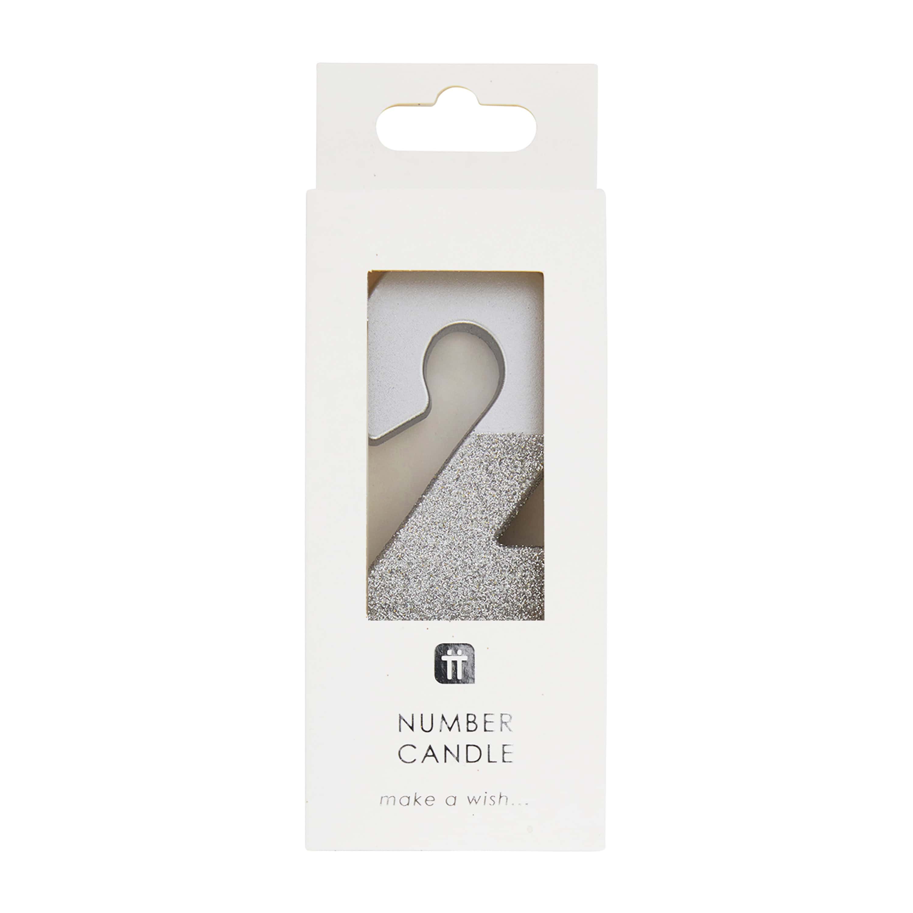 Silver Glitter Number Candle 2
