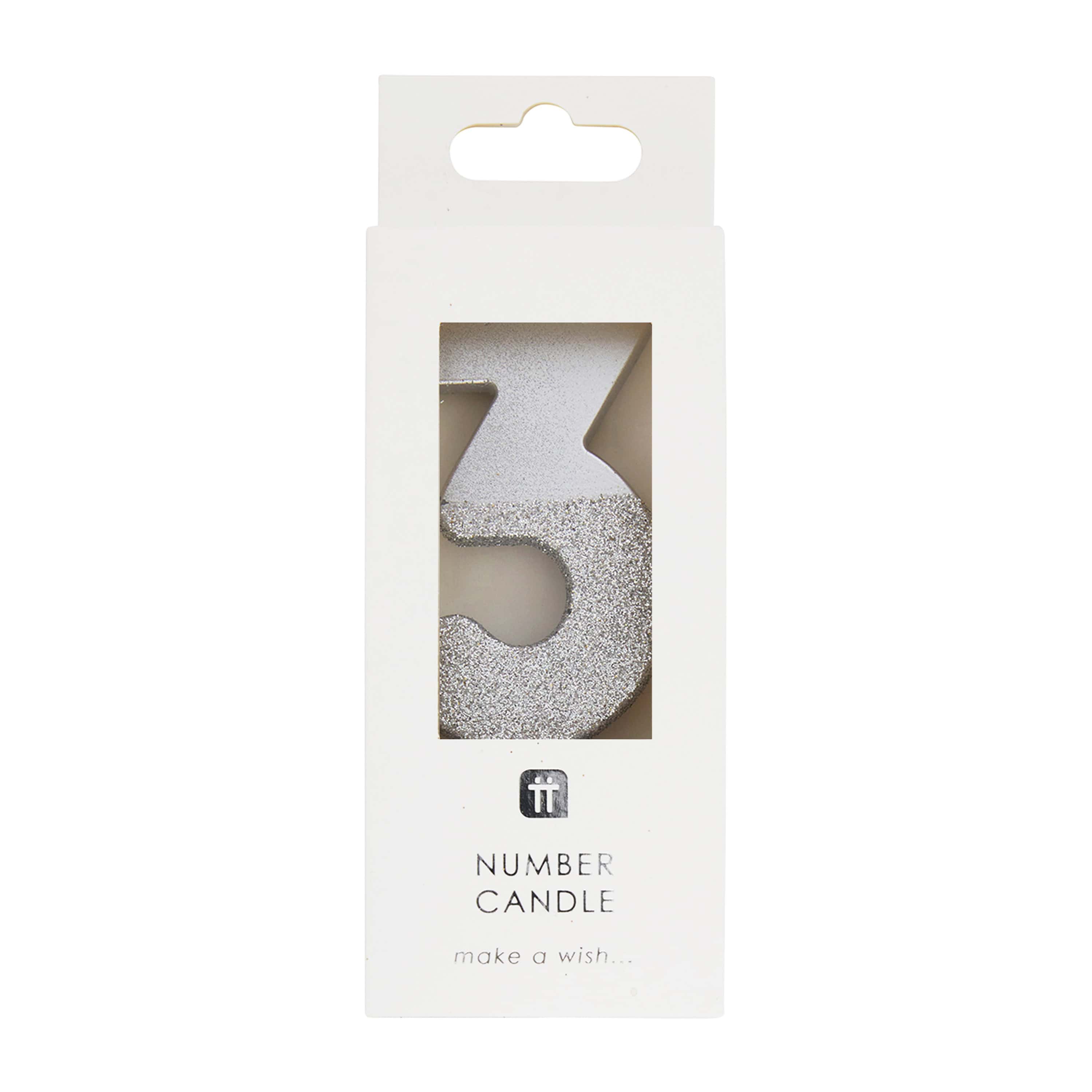 Silver Glitter Number Candle 3