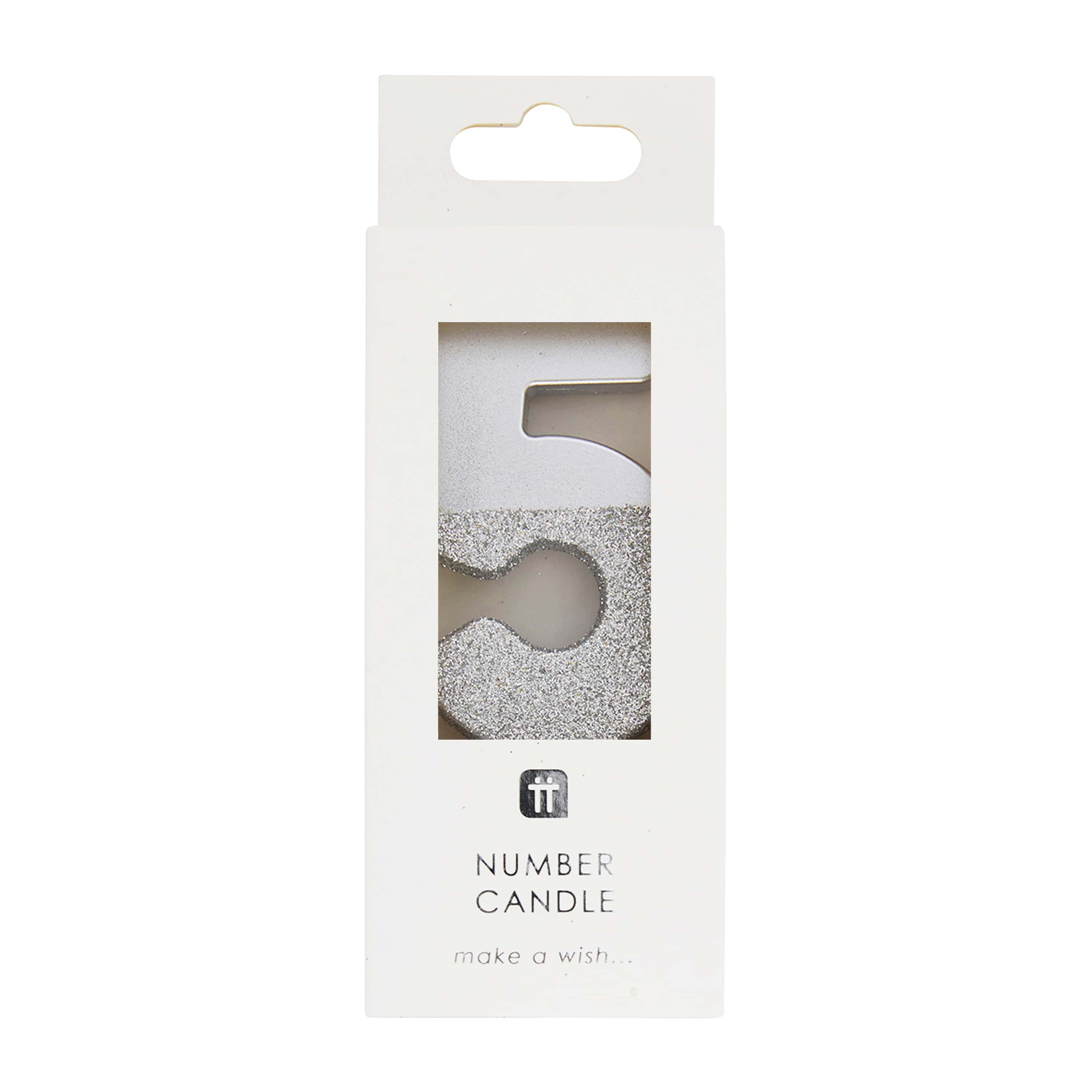 Silver Glitter Number Candle 5