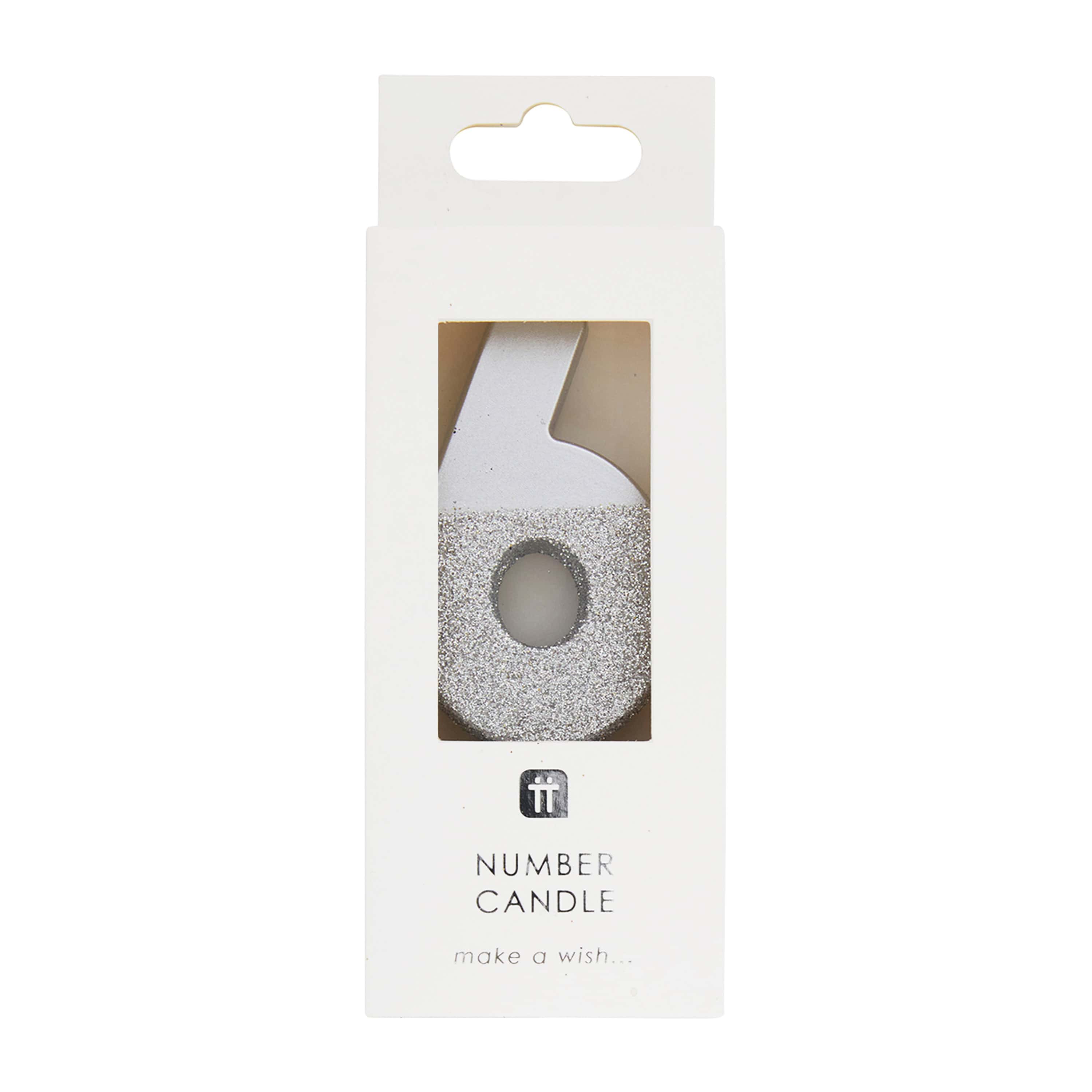 Silver Glitter Number Candle 6
