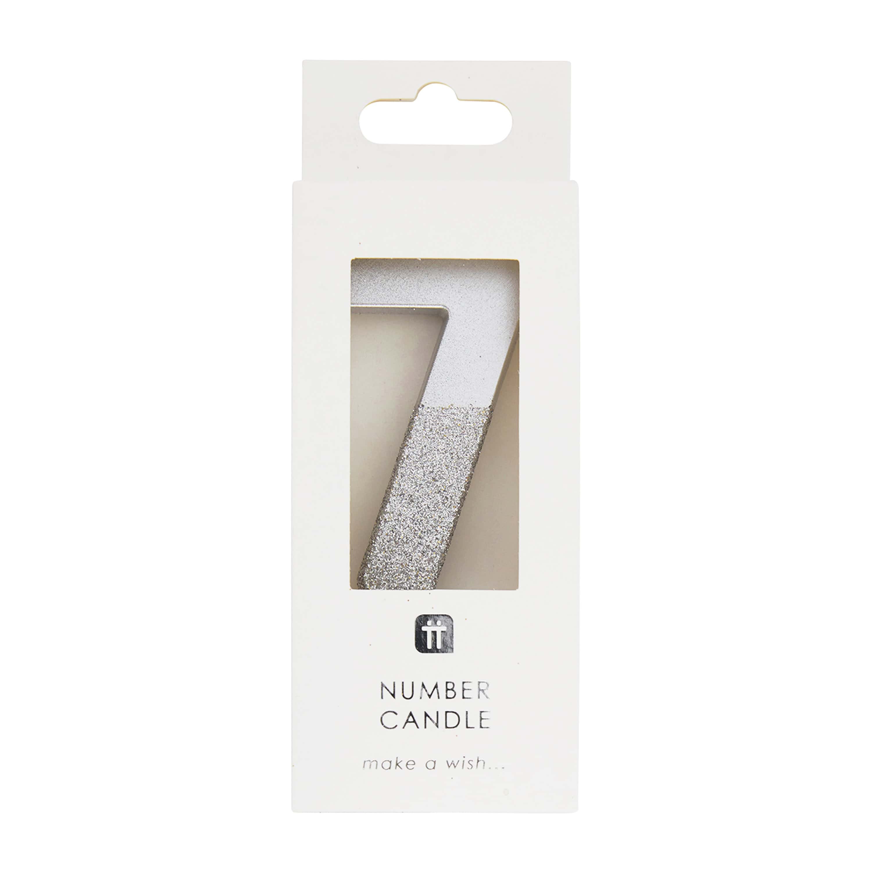 Silver Glitter Number Candle 7